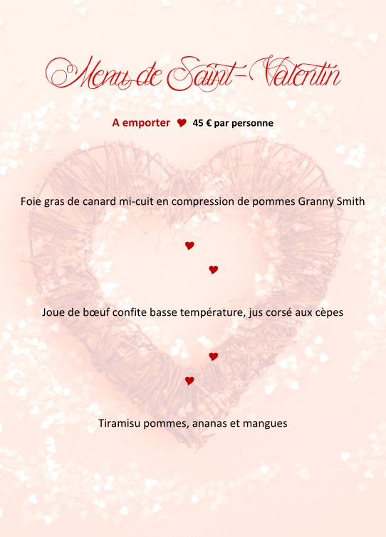 Menu au format PDF : menu traiteur de Saint-Valentin
